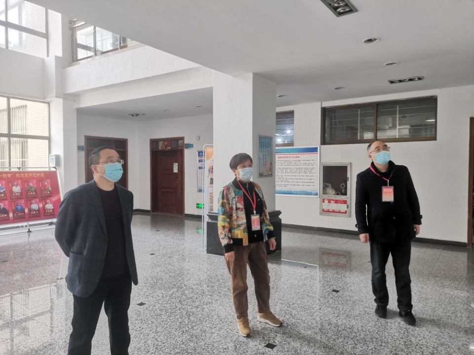 校领导一行认真查看了疫情防控设施和网络复试现场,听取了学院负责人关于研究生网络复试工作的情况汇报。