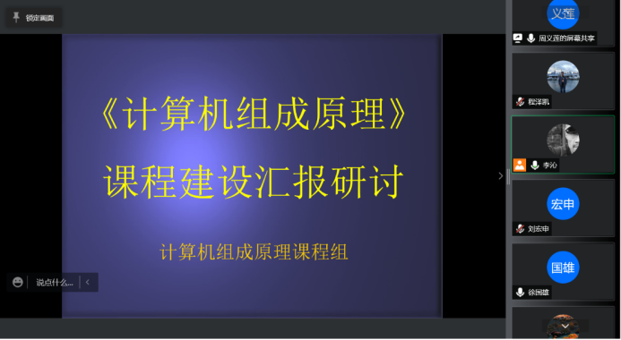 本次教研活动的主题分两部分,首先是周义莲老师的《计算机组成原理》课程建设,周老师介绍了计算机组成原理的课程目标、内容、实践环节设置,并详细介绍了线上平台建设情况,深入地介绍了题库、线上测验、形成性评价的规划和实施。第二部分,李沁主任随后介绍了南京大学计算机系培养方案中硬件课程群的设置情况,着重阐释了《数字逻辑和组成原理》课程内容的安排,以及和其他几门硬件课程的关系。陆勤、刘宏申等硬件课程老师发表了自己的看法,畅谈了对课程改革的必要性,也表达了对学校办学定位和可能会遇到的困难的思索。程院长在总结中充分肯定了计算机组成原理课程组课程建设的工作成果,也对本专业2022版培养方案的修订做了布置。