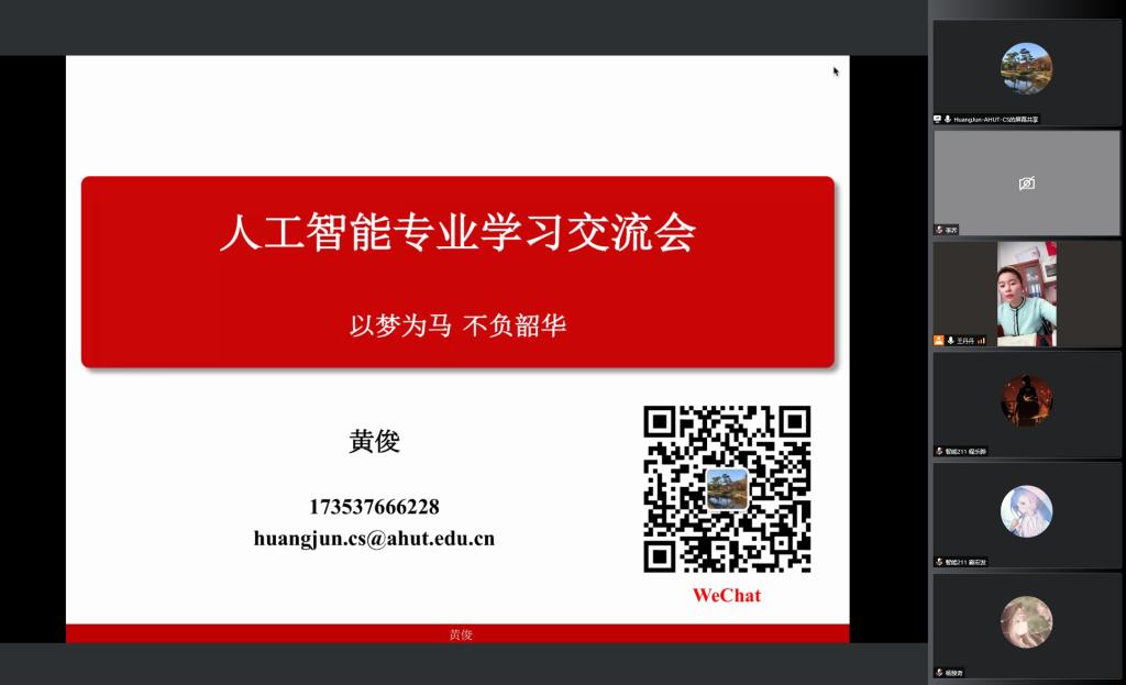 为进一步加强线上学习指导,解答学生的专业疑惑,4月2日,人工智能系召开本科生线上专业指导交流会,人工智能系李乔老师、21级辅导员冯晟、人工智能201、202、211、212班全体同学参加了会议,会议由20级辅导员王丹丹老师和系主任黄俊老师共同主持。