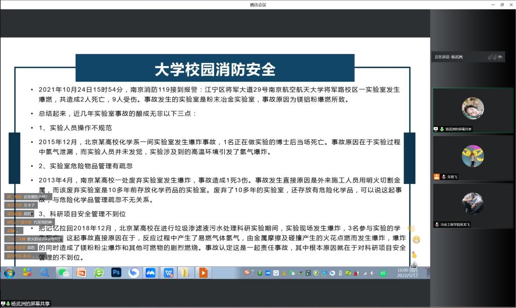2022年5月12日下午,我院组织全体在校硕士研究生参加校园消防安全教育专题讲座,本次讲座采取线上会议形式,由研究生院举办。
