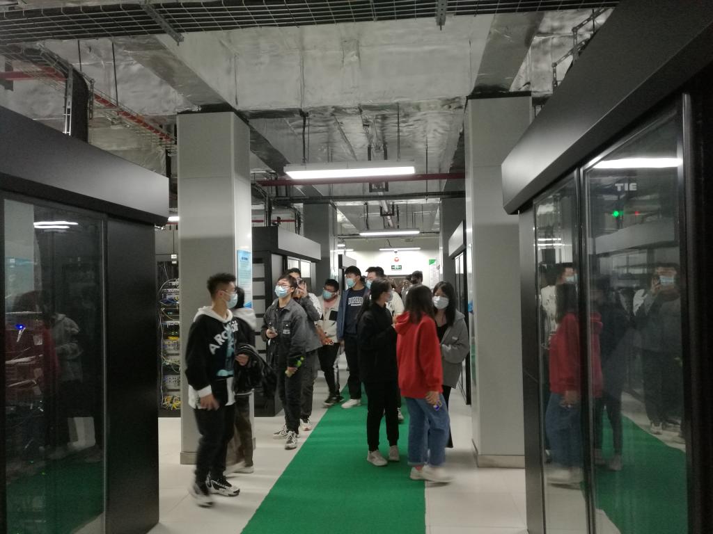 在安徽祥云科技有限公司,学生们实地参观了该公司的数据中心、冷水机组、冷却塔等设备,听取了公司技术人员关于云计算相关知识的技术讲座。通过实习,同学们了解了数据中心的网络架构、硬件架构,虚拟化技术、云平台,文档云、云视频会议、云视频监控、云数据库及Hadoop spark等知识。