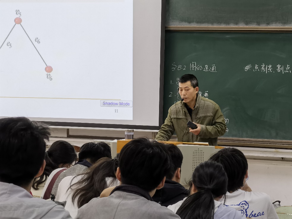 本次公开课的主题是“图的连通性”,这个内容是离散数学图论中的重难点。杨老师首先从“路”的概念入手,教育学生从家国情怀出发要选好人生的路,将自身的价值实现与国家民族的发展相结合,实现人生的意义。在图的连通性的讲解中,杨老师通过实例与理论证明相结合的教学策略,引导学生探索图的连通性和路之间的联系,引入了点割集和边割集等概念,在问与答的教学互动中证明了连通性的充分性和必要性的定理,取得了良好的教学效果。