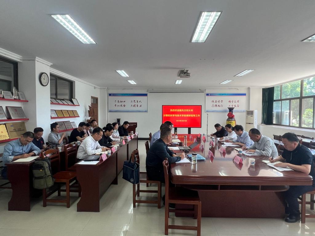 魏先文强调,在以信息技术赋能经济社会高质量发展的大背景下,学院要紧紧抓住数字时代机遇,在教育数字化转型、师生信息素养提升、计算机信息技术与其他学科专业的交叉融合等方面深化研究,努力在数字中国建设中更好地发挥高等教育支撑引领作用。一要落实好立德树人根本任务,加强对学院人才培养工作的总结和凝练,更新计算机专业基础教育理念,深化教育教学改革和培养方案修订,在大学生数字素养与技能的提升上凝聚共识、形成合力,培养适应未来社会需求的创新型人才。二要充分利用好学校的人才引进政策,提高人才引进的质量和数量,打造高水平创新团队,提升师资队伍的核心竞争力,适应学科建设评价体系改革,扩大学科影响力。三要深化内部治理改革,坚持教授治学理念,完善支部及系(室)等基层组织治理,发挥教代会、工会作用,不断加强治理体系和治理能力现代化建设,进一步激发和释放学院办学活力。