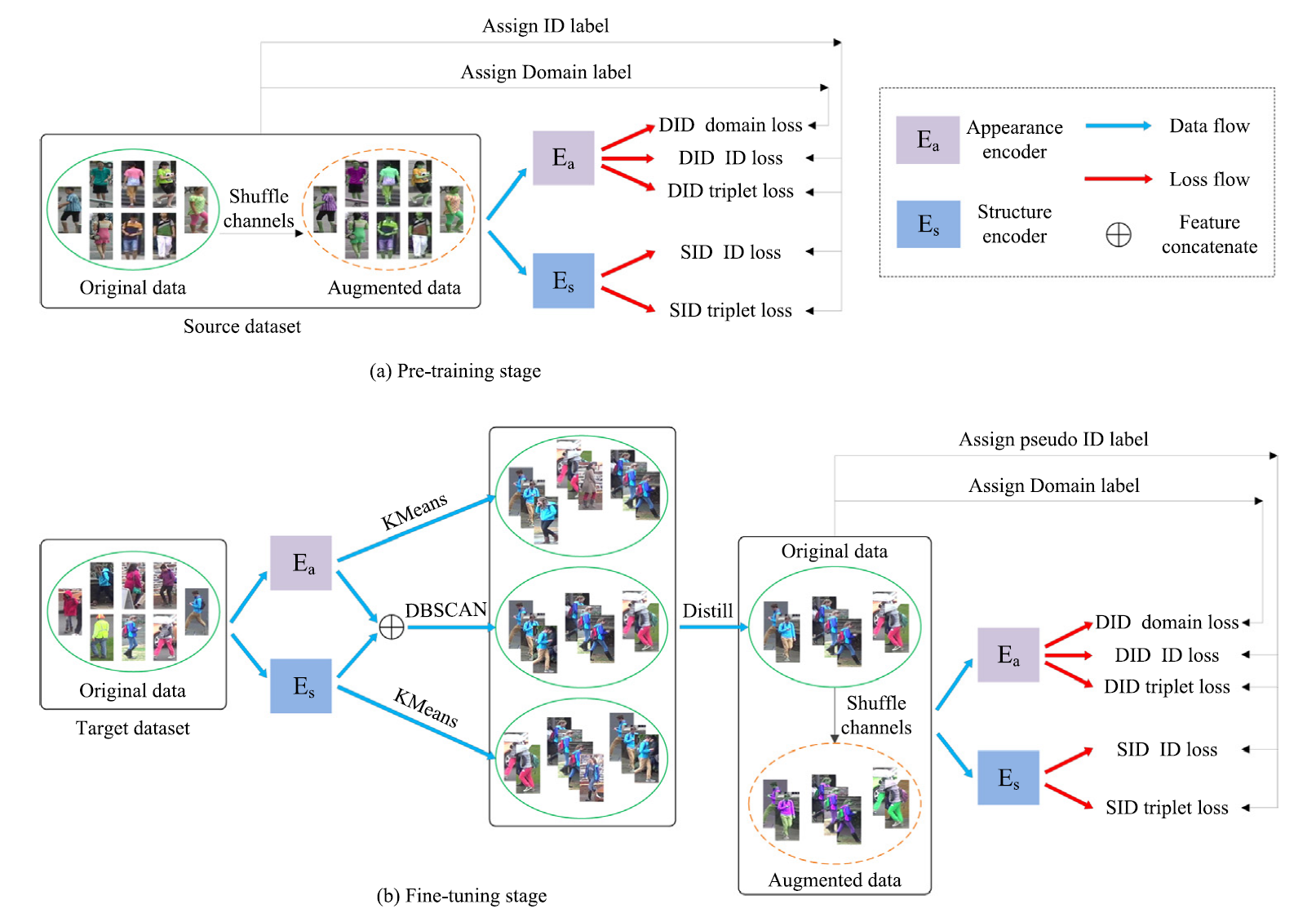 行人重识别任务旨在解决跨视角条件下行人图像检索问题,是计算机视觉和生物特征识别领域的一个重要研究方向。由于不同域之间差异的存在,已有行人重识别研究在实际应用中存在跨域性能良的问题。团队在分析现有无监督行人重识别方法的基础上,提出一种利用色彩空间特性来丰富数据多样性的方法,进而借助增广数据之间的语义关联性和多重聚类算法来提升伪标签的置信度。相关研究成果发表在人工智能、计算机视觉领域一区TOP期刊《Pattern Recognition》(IF: 8.0)。我校为论文第一完成单位,计算机学院陈峰博士为第一作者。