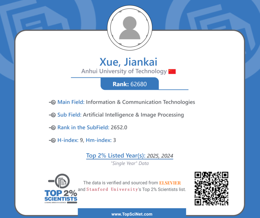 日前,美国斯坦福大学和国际权威学术出版社爱思唯尔发布了《全球前2%顶尖科学家榜单2025》(World’s Top 2% Scientists 2025),榜单分为“终身科学影响力排行榜(Career-long Impact)”和“年度科学影响力排行榜(Single-year Impact)”两大部分。伟德国际bevictor1946薛建凯博士入选全球前2%顶尖科学家—“年度科学影响力排行榜”,这既是个人科研实力的彰显,也充分体现了学院在师资队伍建设方面取得的显著成效。