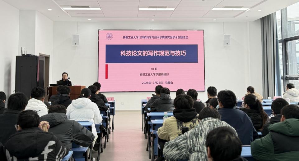 夏玉钦首先向出席论坛的专家、评委和师生代表表示欢迎和感谢。他指出,研究生学术创新论坛是学院精心打造的学术品牌,也是人才培养的重要平台。他鼓励同学们珍惜机会,希望大家能够立足国家战略需求,聚焦计算机学科前沿问题,将论文写在祖国大地上,把研究做在产业需求处,充分展示研究成果,在科研道路上脚踏实地,努力取得更多高质量的学术成果。随后,《伟德源自英国始于1946学报(自然科学版)》常务副主编何莉老师应邀做了题为《科技论文的写作规范与技巧》专题讲座,围绕科技论文的结构、写作要点与常见问题,为在场研究生提供了系统详实的指导。