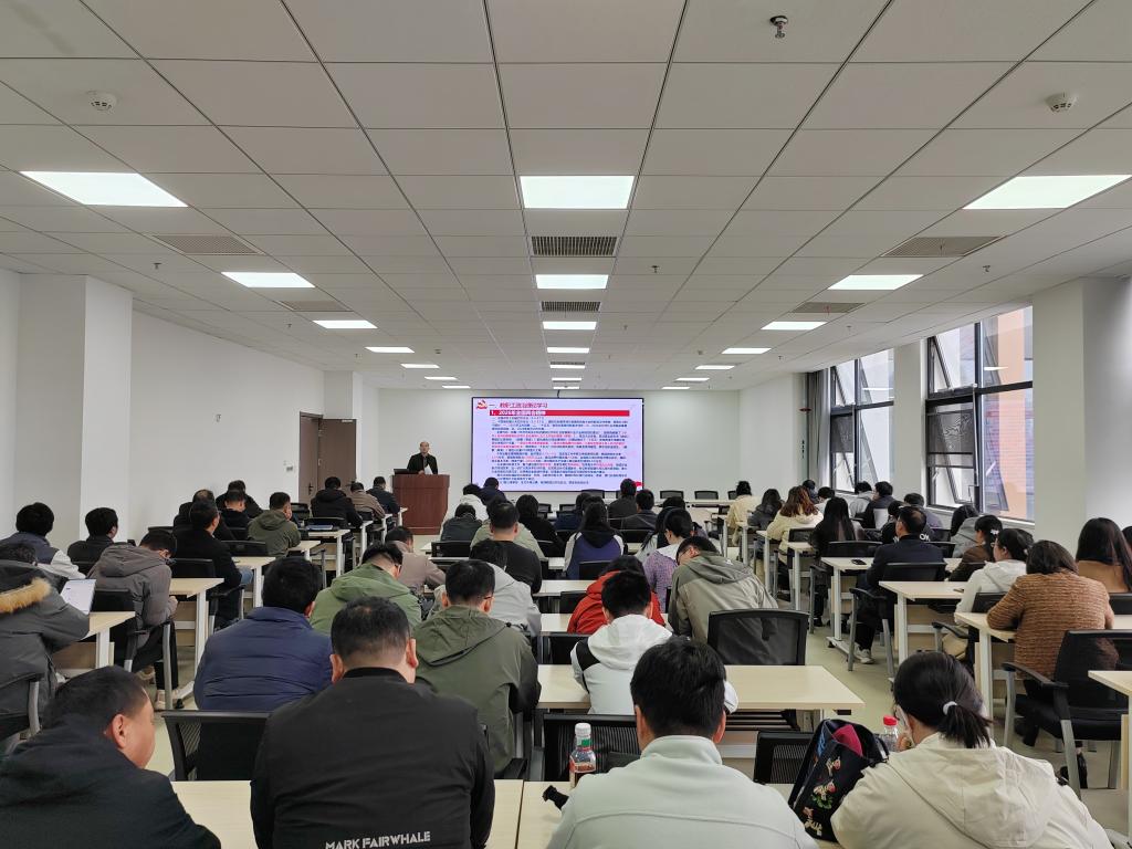 3月23日下午,学院召开了2026年第二次全院教职工大会。学院领导班子、全体教职工和学生代表参加,会议由学院党委书记夏玉钦主持,科研院副院长郑近德应邀作专题辅导报告。