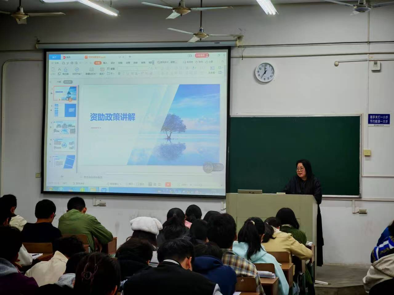 宣讲会伊始,冯艳强调了高校学生资助工作的重要意义。在政策解读环节,冯艳系统梳理并详细讲解了高校学生资助政策体系,重点介绍了包*国家奖学金、国家励志奖学金、国家助学金、国家助学贷款、校内各类奖助学金、学费补偿贷款代偿等多个资助项目,并就每种资助政策的申请条件及注意事项进行了细致说明。针对新生普遍关心的绿色通道、临时困难补助等专项政策,结合具体案例进行了清晰阐释,确保同学们能全面、准确地理解各项政策内容。同时,她特别提醒同学们要密切关注学校和学院发布的各类资助通知,严格按照时间节点和要求提交申请材料,学院将秉持“公平、公正、公开”的原则,规范开展资助项目的评审与发放工作,切实将国家的关怀与学校的温暖传递给每一位需要的同学。在互动答疑环节,冯艳就同学们提出的各类具体问题进行了耐心细致的解答。