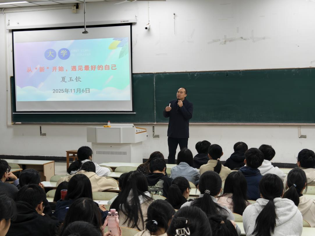 2025年11月6日下午,伟德国际bevictor19462025级本科生新生开学第一课在教三南203举行。学院党委书记夏玉钦以《从“新”开始,遇见最好的自己》为主题,为同学们带来了一堂生动深刻、催人奋进的第一课。