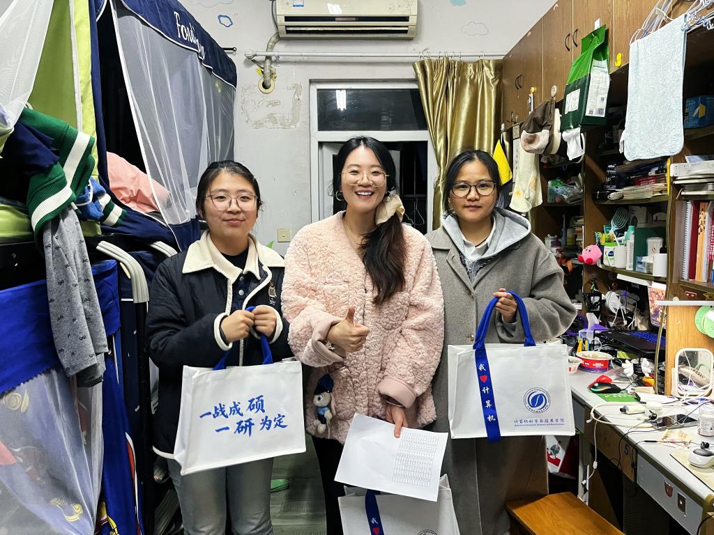 “学院一直惦记着大家,你们不是一个人在战斗。”在安静的考研自习室,慰问老师轻声询问同学们的复习进度与生活状况,叮嘱大家要注意防寒保暖、劳逸结合,保持积极平和的心态,以最佳状态迎接挑战。在宿舍区,老师们关切地了解同学们的备考环境与作息安排,鼓励他们相互扶持,共同营造良好的学习氛围。