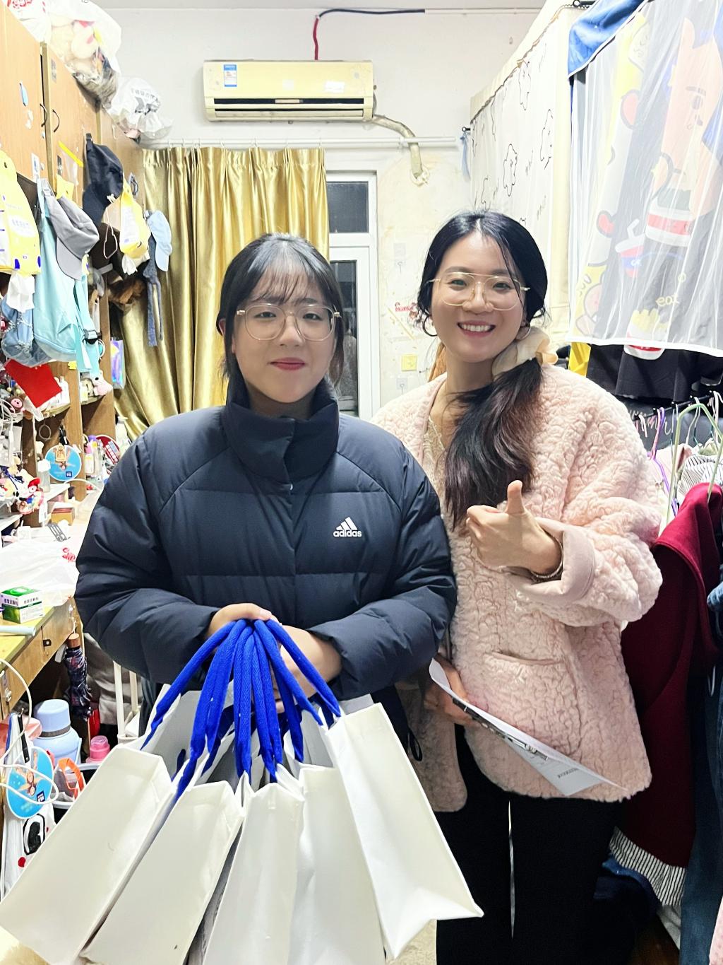 慰问小组一行先后来到学院考研自习室及学生宿舍,为埋头苦读的学子们送上精心准备的“考研加油包”。每一份加油包不仅包含实用的文具,更特意放置了象征“柿柿如意”的甜美柿果挂件,以及寓意“一锤定音”的如意小锤,寄托了学院希望学子们复习过程“事事顺利”、最终考场“一举定乾坤”的深切祝福。