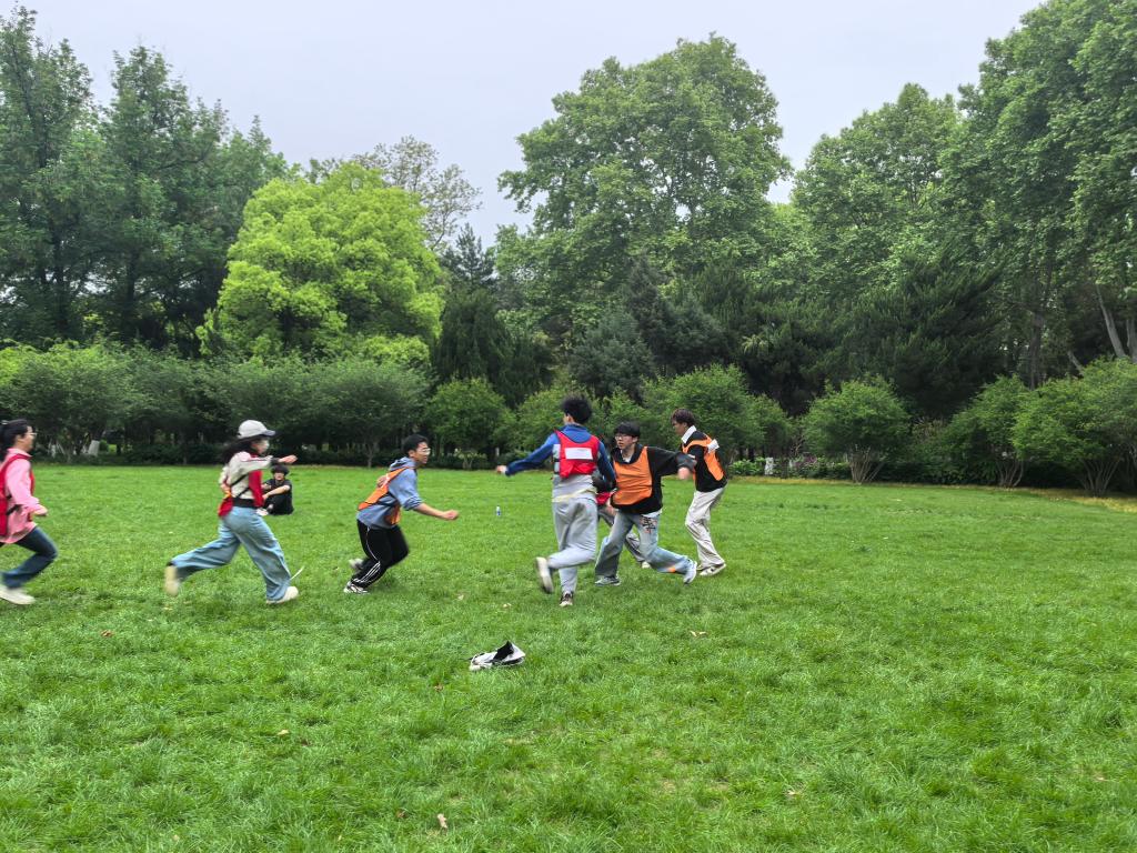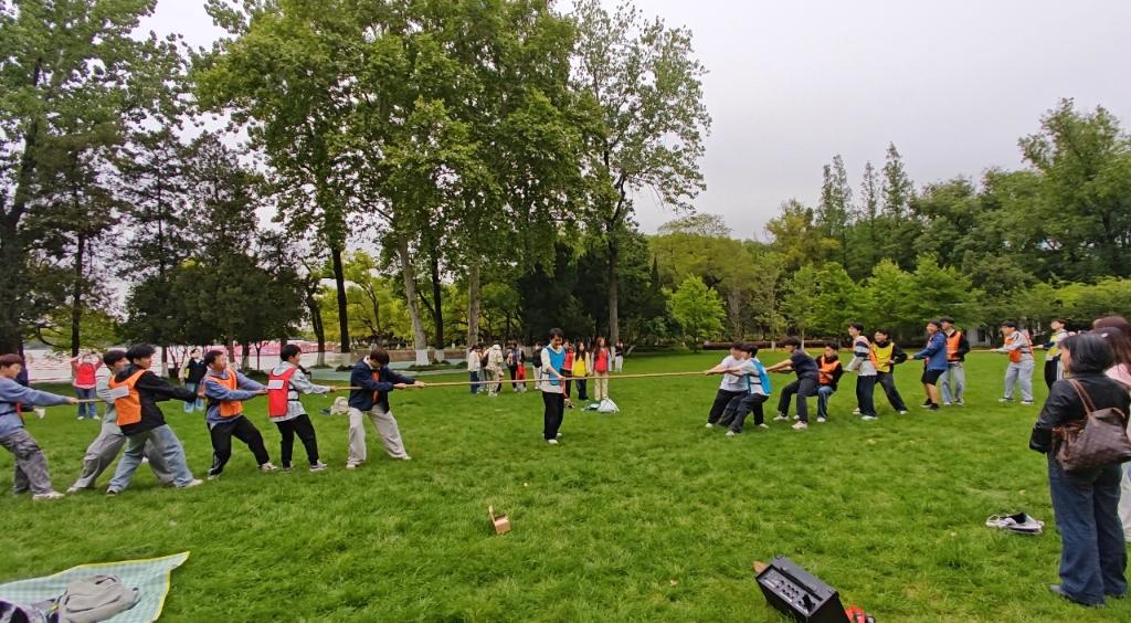 活动伊始,趣味破冰小游戏打破了同学间的陌生感,轻松的互动让大家迅速熟络,为后续活动奠定了融洽基础。破冰结束后,拔河比赛与撕名牌奔跑游戏轮番上演。拔河现场,学子们紧握长绳、齐心协力,呐喊声此起彼伏;撕名牌游戏中,大家灵活周旋、默契配合,在奔跑中释放压力、增进友谊,充分展现了团结拼搏的精神风貌。